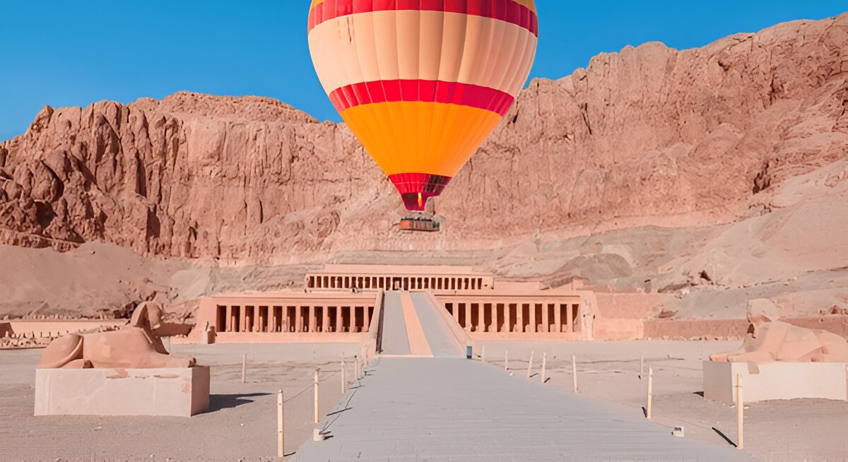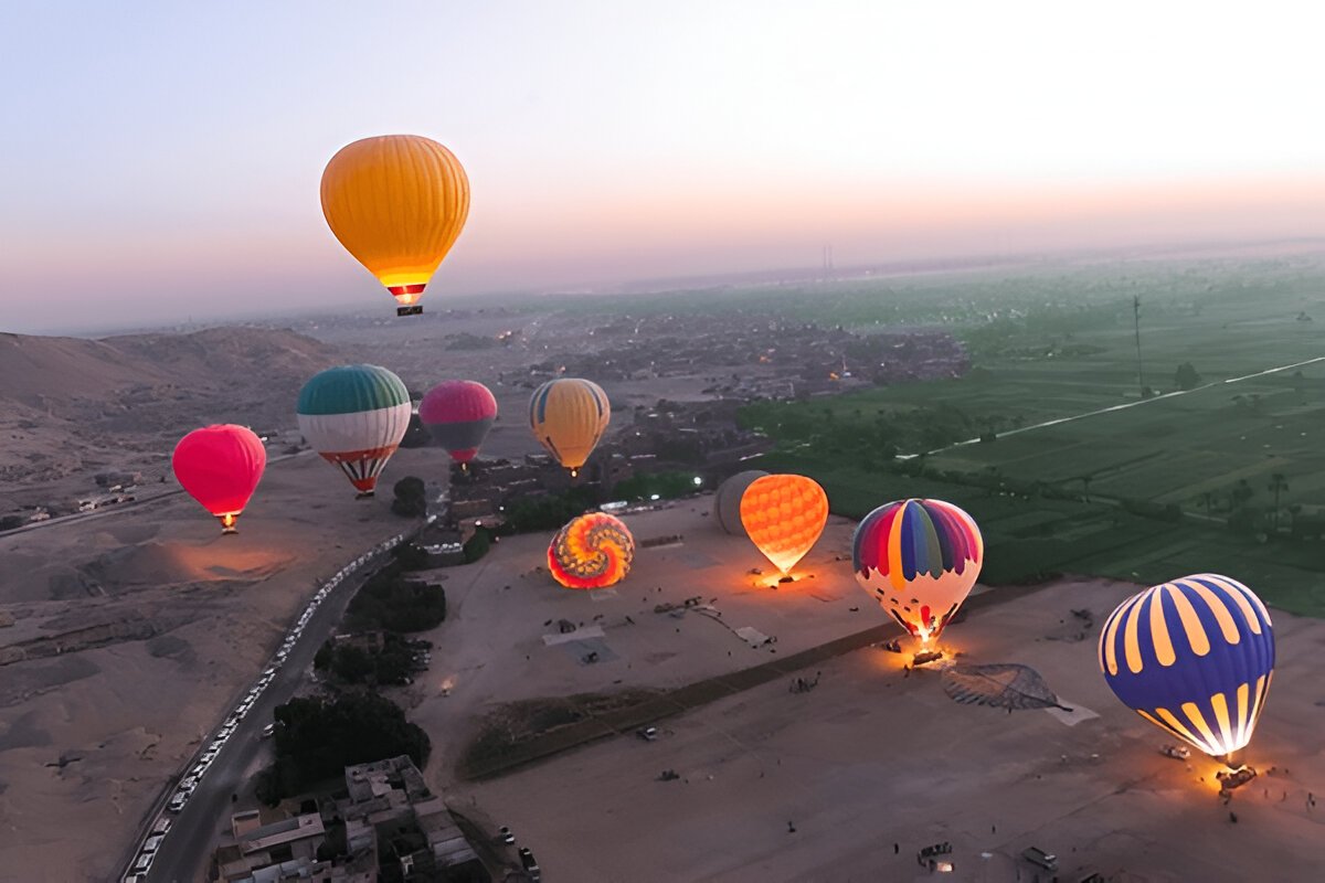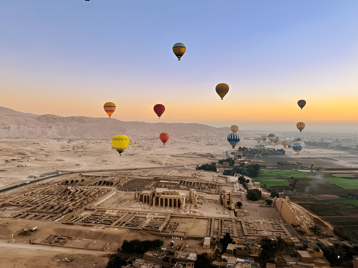 Your journey begins at midnight with a comfortable transfer from your hotel in Hurghada to Luxor. Upon arrival, you’ll prepare for the hot air balloon ride and take off around 5:00 AM, enjoying 45–60 minutes of magical flight above one of Egypt’s most historic cities. Witness the sunrise over Karnak, Hatshepsut Temple, and the Nile. After landing, you’ll relax with refreshments before starting your return to Hurghada by 11:30 AM.